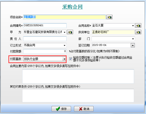 項目付款總控制(付款控制)即付款按執行金額來付款。
