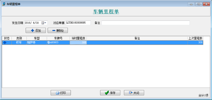 注:三個單據(jù)中“上次里程數(shù)”,系統(tǒng)自動檢索之前最近的一個單據(jù)的“當(dāng)時里程數(shù)”,如果沒有最近的單據(jù)則為【內(nèi)部車輛維護(hù)】中所填寫的“期初里程數(shù)”。