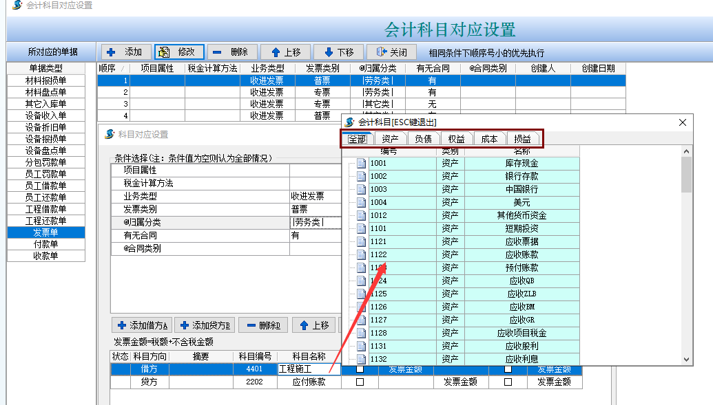 如果填寫的發票為專票:我們關聯的借方科目也進行拆分,生成憑證如下: