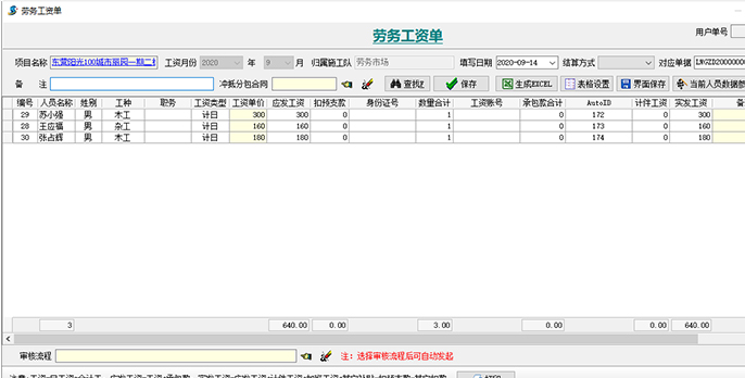 1、項目部以【勞務考勤單】為勞務進出場的日報,需每日完成。月底根據【勞務考勤單】生成月度工資表進行結算