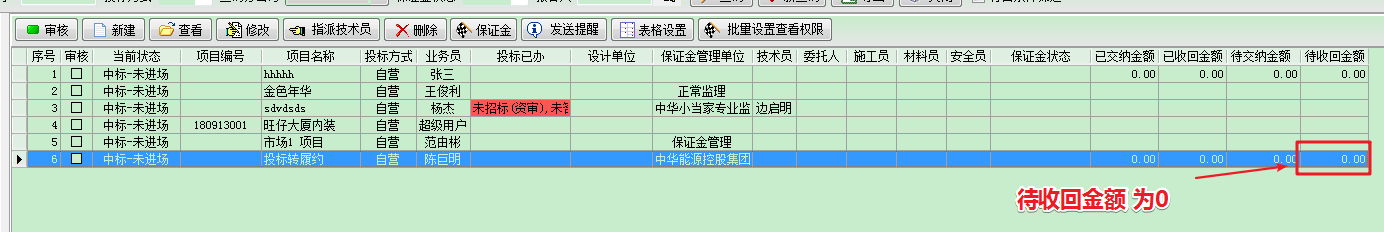 此時(shí)在項(xiàng)目開拓中,查看投標(biāo)保證金的相關(guān)信息時(shí),如下圖,