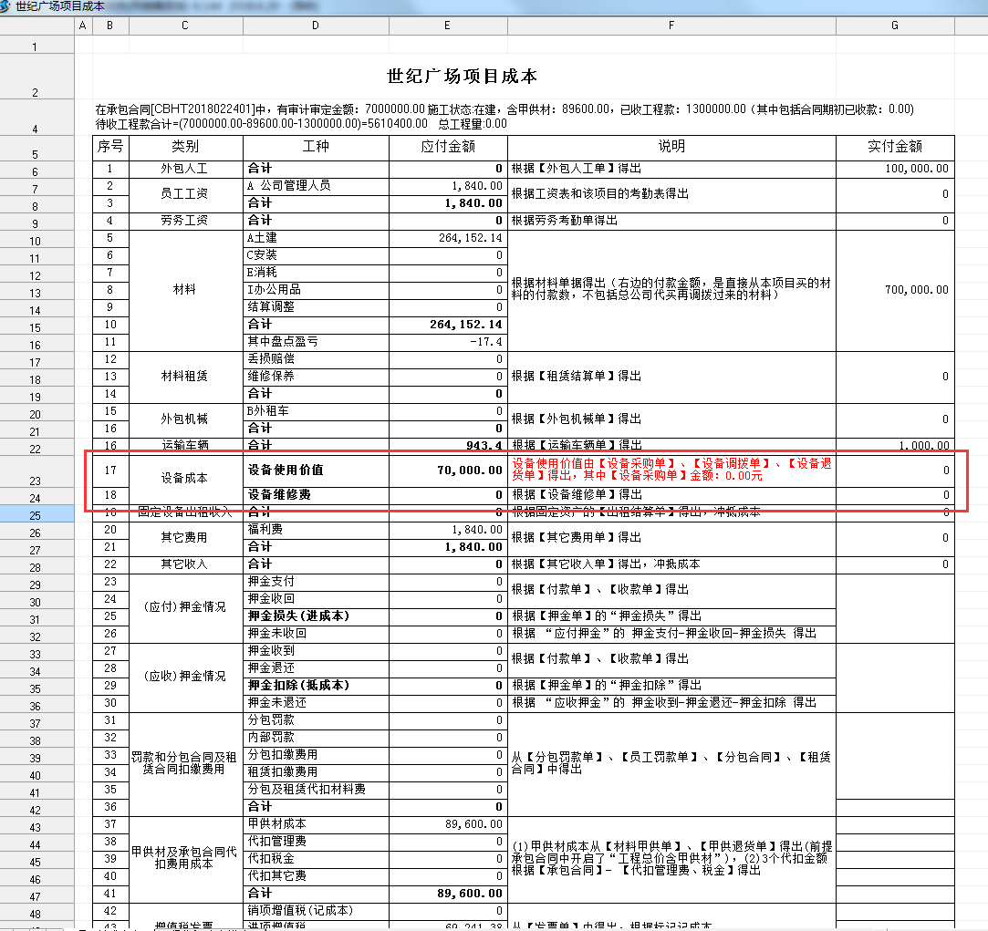 打開開關(guān)后,在【設(shè)備調(diào)撥單】中就以設(shè)備進(jìn)場(chǎng)使用價(jià)值為準(zhǔn)來計(jì)算成本,如下圖: