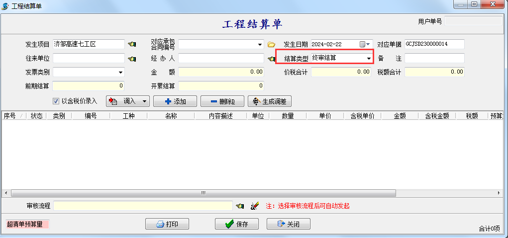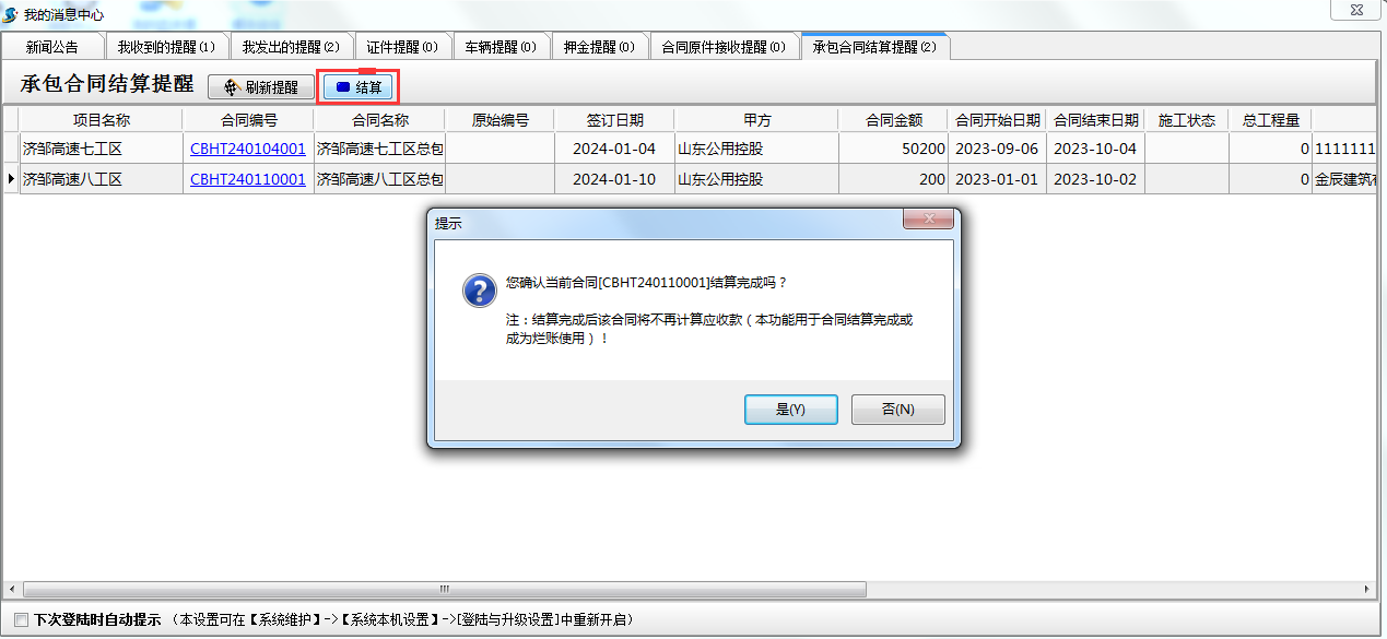 如果項(xiàng)目結(jié)算完成,可以點(diǎn)擊結(jié)算選項(xiàng)取消提醒,也可以填寫工程結(jié)算單選擇終審結(jié)算取消提醒。