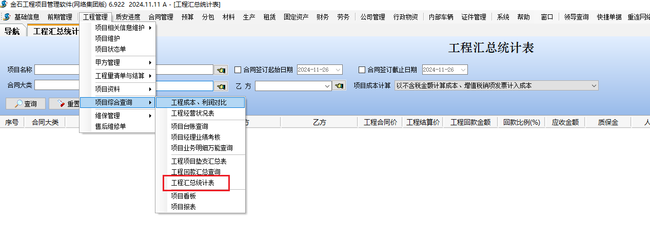 工程匯總統計表:直觀展現項目的各項成本、收入金額、已付成本、待付成本等