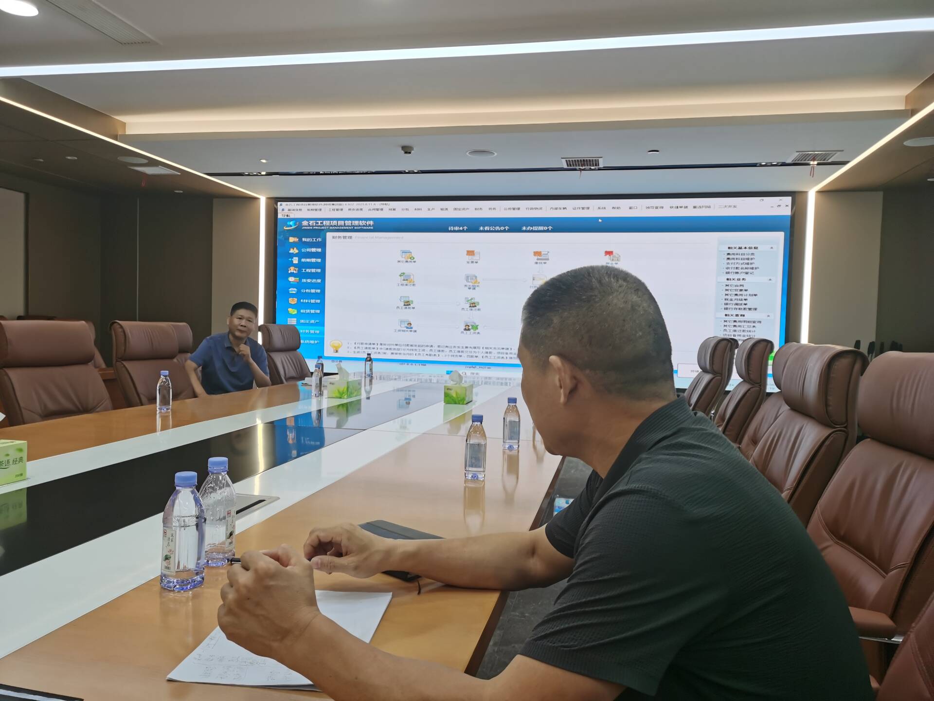 在培訓現場,張工結合鵬程控股集團的實際業務案例,詳細演示了軟件在進度管理、成本控制、材料調度、財務對接等方面的功能應用。他重點介紹了如何通過金石軟件實現項目數據的實時采集與分析,如何利用平臺的多維度報表輔助管理層科學決策,并針對學員在實際操作中遇到的問題逐一進行解答。
