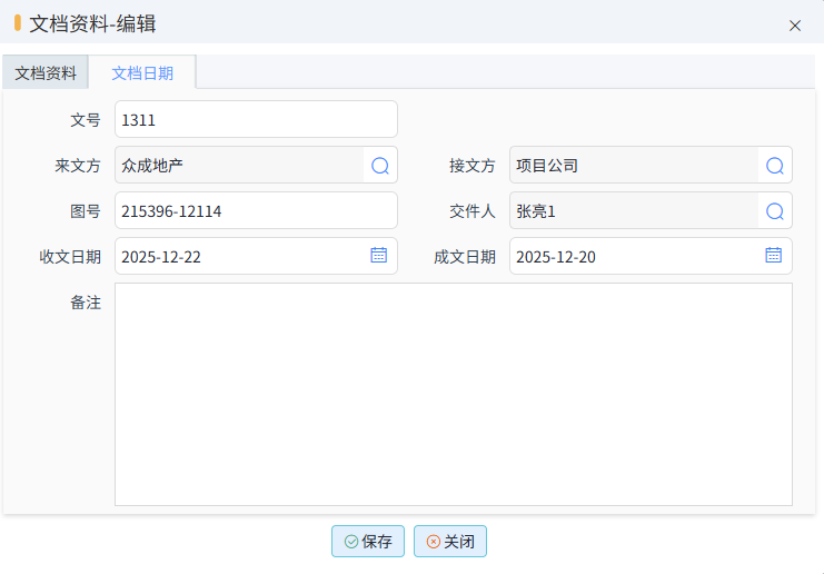 文檔日期中,還可以輸入,當前文檔文號,來文方和接收方等。