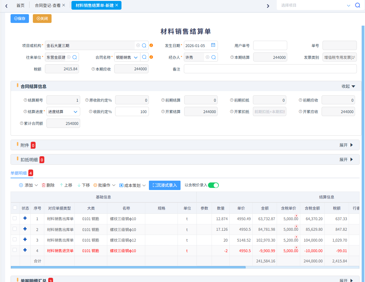 針對(duì)系統(tǒng)集成、市政路橋等行業(yè)有銷(xiāo)售業(yè)務(wù)可以填寫(xiě)銷(xiāo)售合同,根據(jù)銷(xiāo)售合同生成材料銷(xiāo)售出庫(kù)單、材料銷(xiāo)售結(jié)算單。